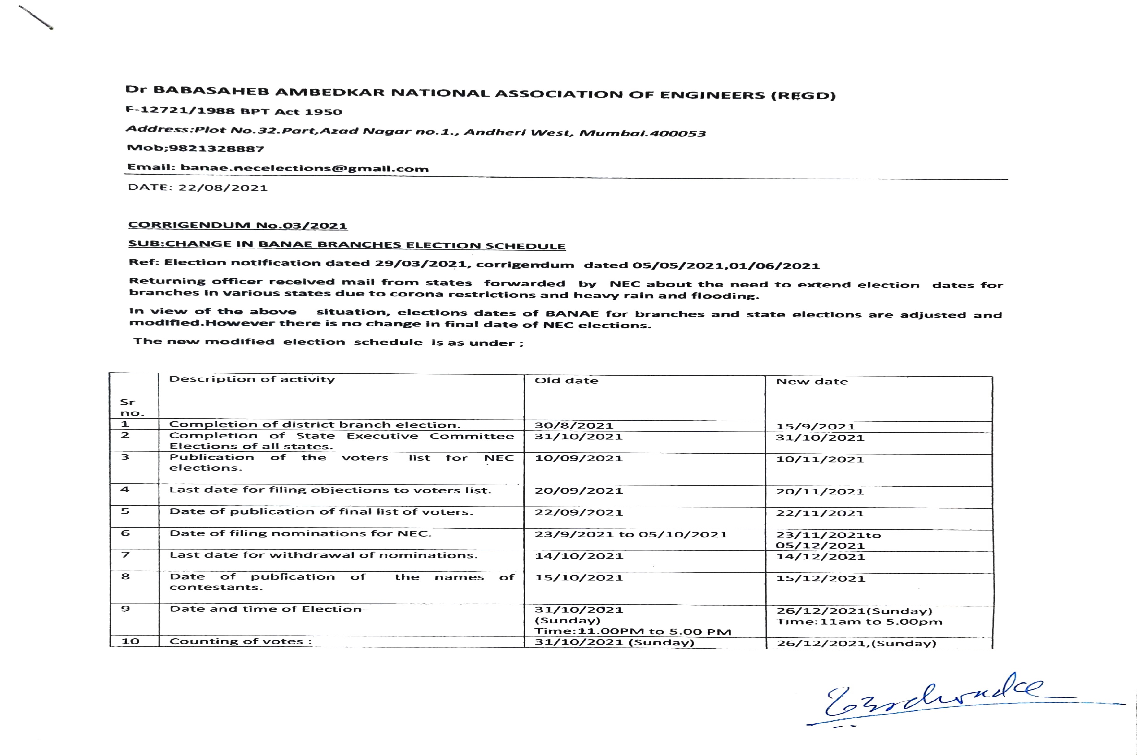 Click on below link to view NEC Election Schedule Amendement - 3 dated 22.08.21