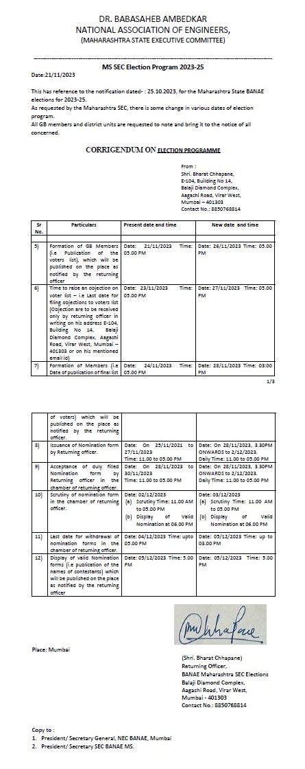 Corrigendum- BANAE MS SEC Elections 2023-25 Posted on 22/11/2023 - 12:19 AM Corrigendum- BANAE MS SEC Elections 2023-25