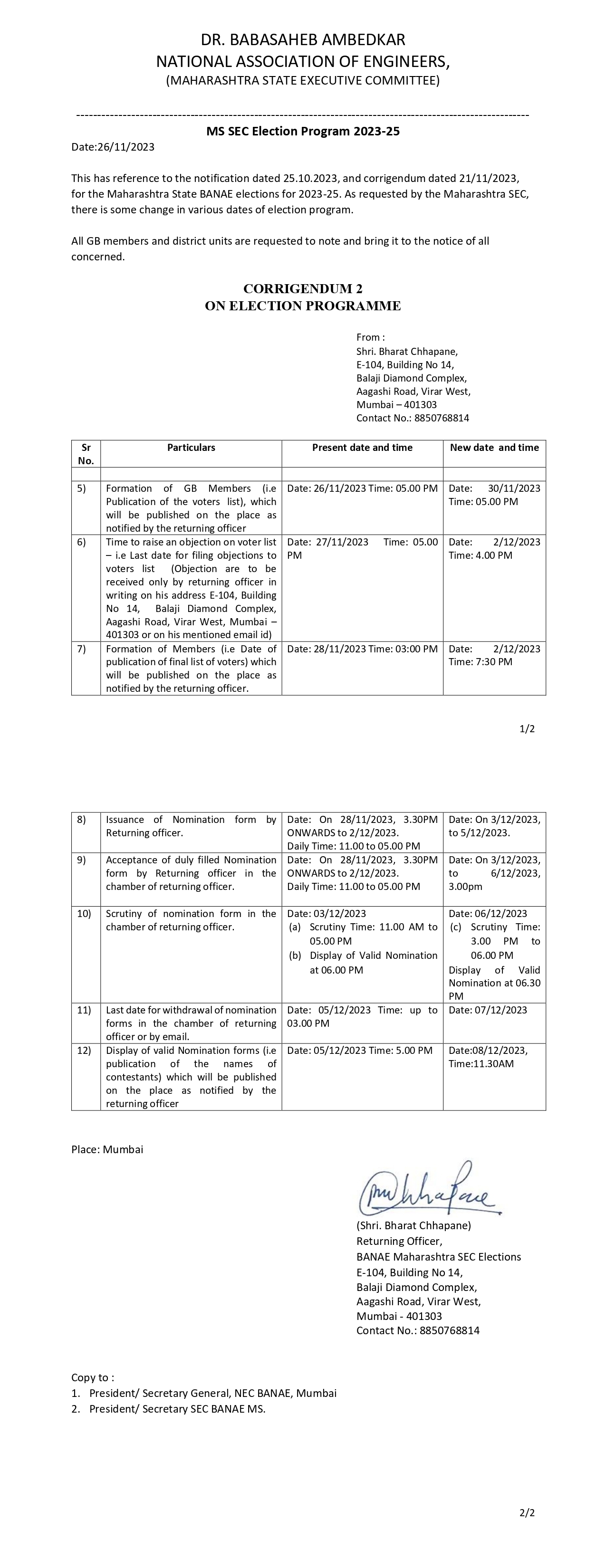 Corrigendum2 -BANAE MS SEC Elections- 2023-25 Posted on 27/11/2023 - 12:04 AM Corrigendum2 -BANAE MS SEC Elections- 2023-25